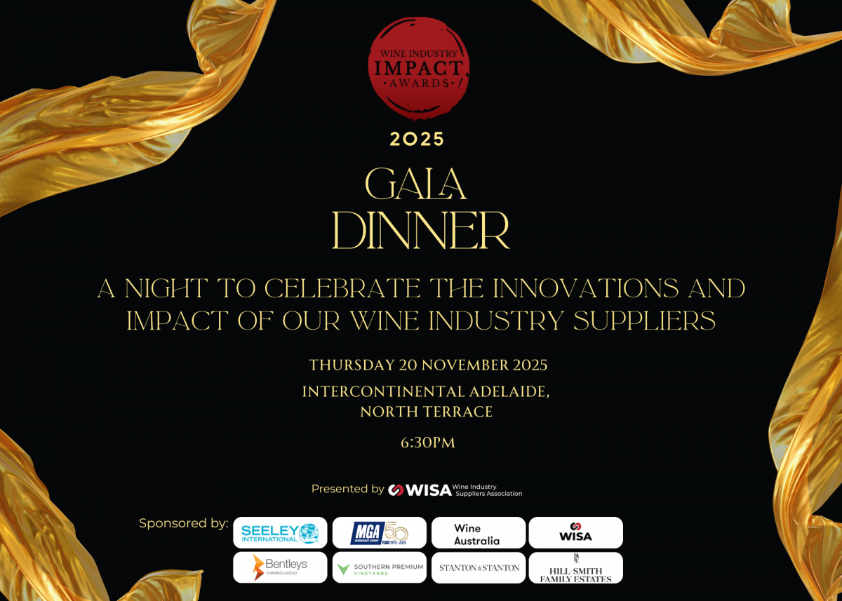 The Wine Industry Impact Awards Gala returns on 20th November. The Wine Industry Impact Awards are the Australian wine industry's night of nights, celebrating the best of the best across the wine supply chain. The night celebrates all aspects of the wine value chain including sustainability, packaging and design, wine business, engineering and winemaking & oenology. The Wine Industry Impact Awards Gala Dinner is one of the biggest events on the wine industry calendar, attracting key personnel from wineries, grape growers, suppliers, retailers, and industry bodies.