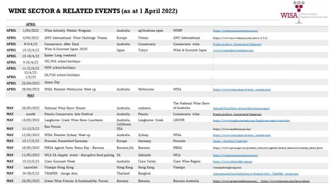A handy summary list of events across the wine sector supply chain