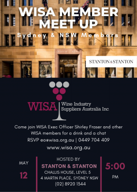 Join WISA Executive Officer; Cameron Hills at the Sydney Royal Wine Show Trophy Winners Lunch. 18 August 2023 at the Hyatt Regency Sydney.